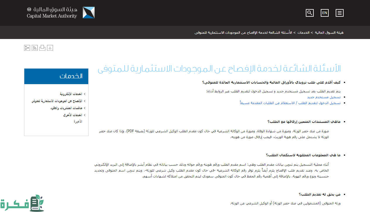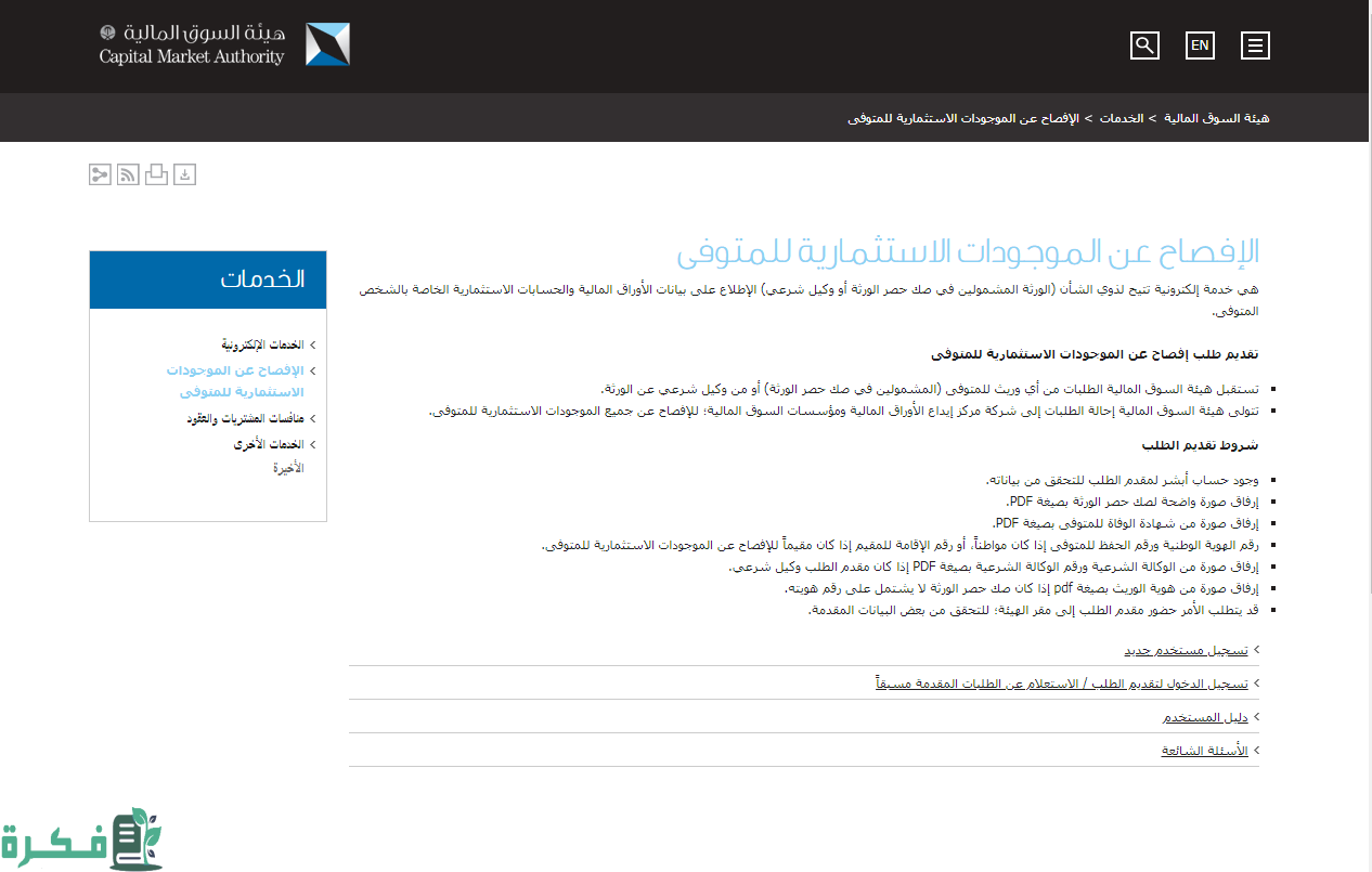 - تقديم رقم الإقامة إذا كان مقيم للإفصاح عن الموجودات الاستثمارية للمتوفي.