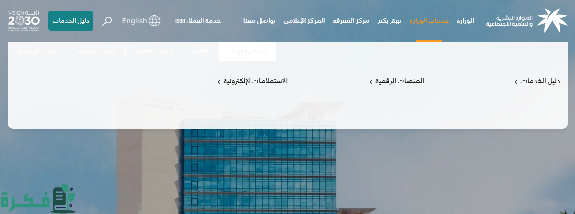 - الدخول إلى خدمات الوزارة، ثم اختر “دليل الخدمات” من الشاشة الرئيسية.