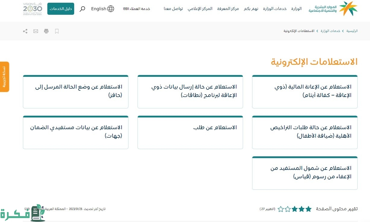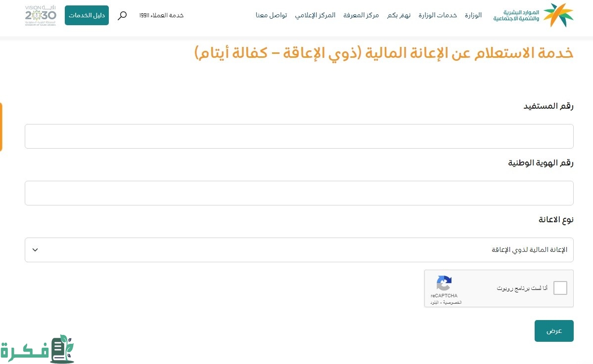 - انقر على “الاستعلام عن الإعانة المالية (ذوي الإعاقة – كفالة الأيتام)”.