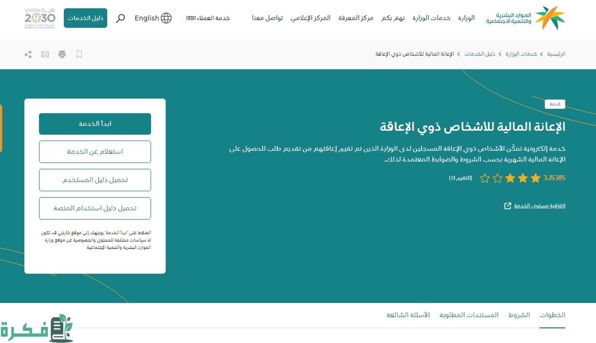 - اختار “الإعانة المالية للأشخاص ذوي الإعاقة”.