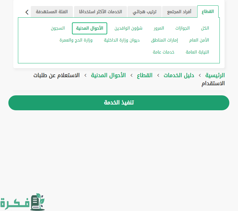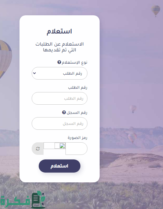 - تُتاح خدمة الاستعلام عن الطلبات المقدمة على الواجهة الرئيسية للموقع.