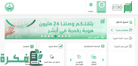 - التوجه إلى منصة أبشر من هنــــا.