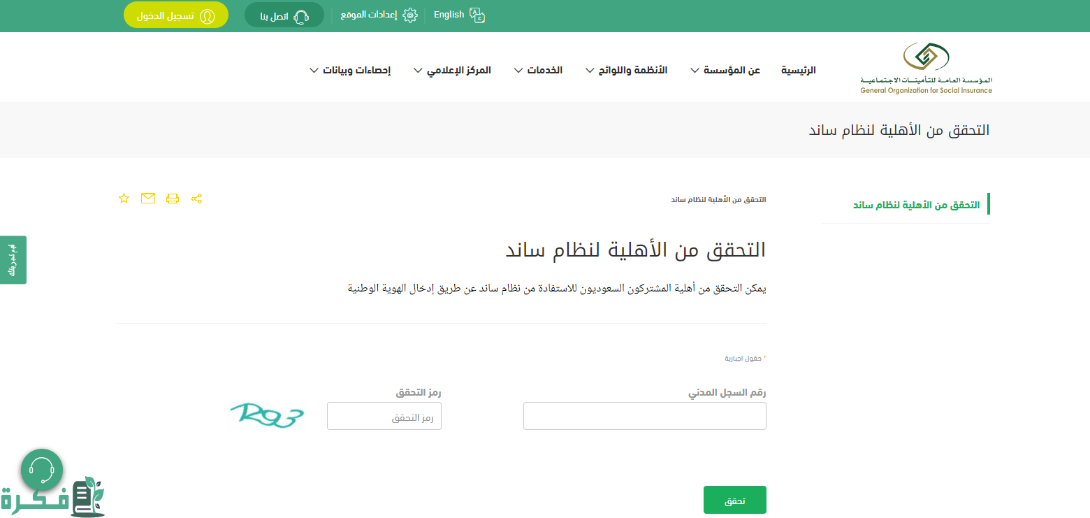 - ادخل إلى الموقع الإلكتروني الرسمي الخاص بهيئة التأمينات الاجتماعية من هنا.