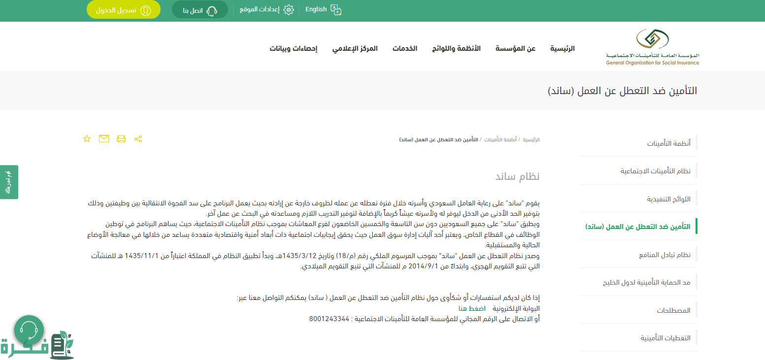 وفرت هيئة التأمينات الاجتماعية برنامَج ساند، للأشخاص الذين تركوا عملهم لظروف قهرية خارجة عن إرادتهم، لذلك قامت الهيئة بتوفير مبلغ دعم مالي لا يقل عن الحد الأدنى للأجور داخل المملكة، كي يتمكنوا من عيش حياة كريمة.
