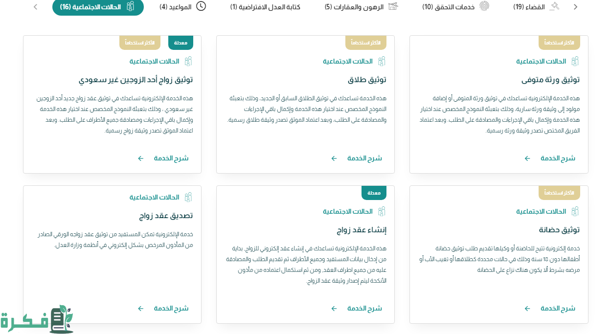 - اكتشاف كافة المتطلبات المتعلقة بالخدمة والشروط التي صرحت عنها الوزارة من أجل التقديم على خدمة توثيق عقد الزواج.
