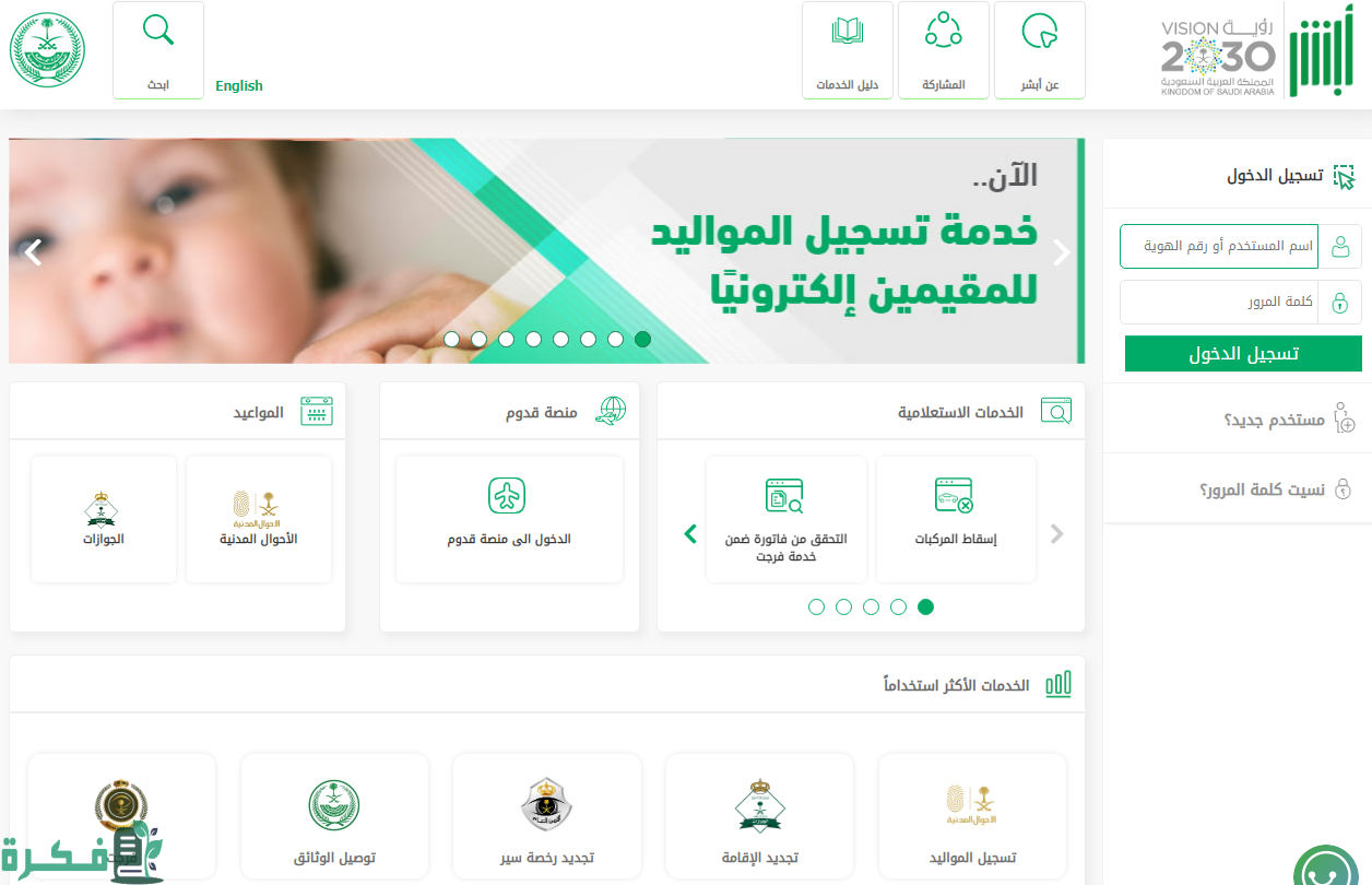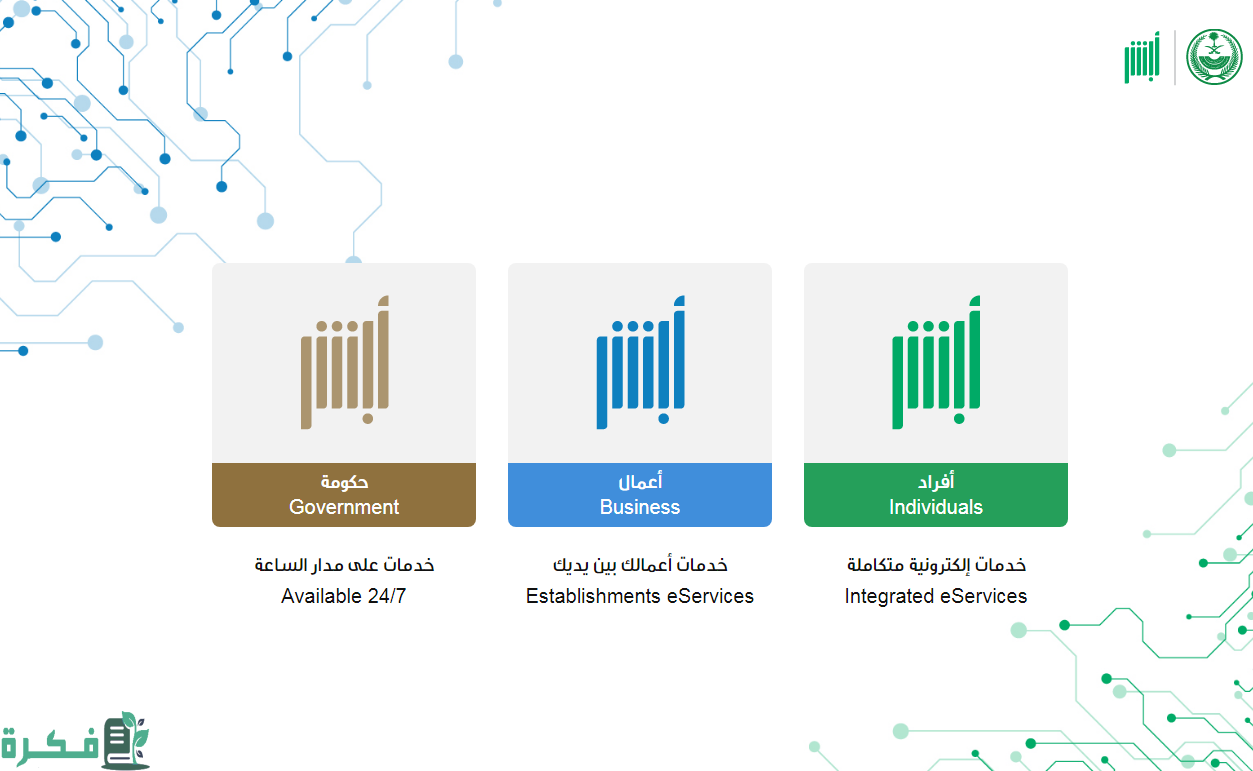 1. الولوج إلى الموقع الرسمي لمنصة أبشر الإلكترونية من هنا.