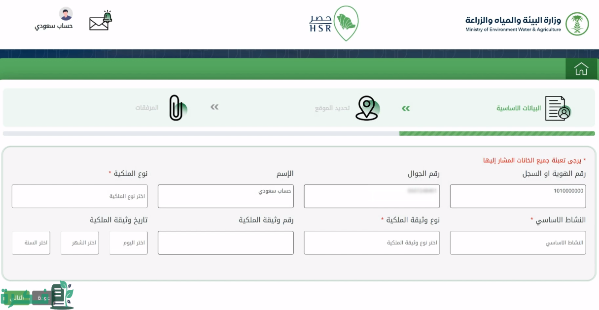 - ملء نموذج الطلب، من خلال تدوين كافة البيانات اللازمة بشكل صحيح، ثم النقر على التالي.