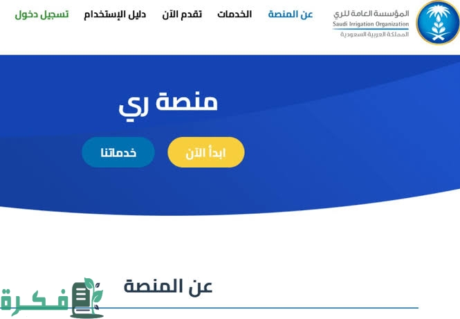 المؤسسة العامة للري الخدمات الإلكترونية رابط تسجيل الدخول المباشر من خلال موقع فكرة، اتاحت في الفترة الأخيرة المؤسسة العامة للري في المملكة العربية السعودية العديد من الخدمات التي يمكن للجميع الاستفادة منها ويكون ذلك عبر تسجيل الدخول إلى المؤسسة العامة للري الخدمات الإلكترونية واليوم جئنا اليكم رابط المؤسسة العامة للري وطريقة تسجيل الدخول إلى المؤسسة في السطور القادمة فتابعونا.