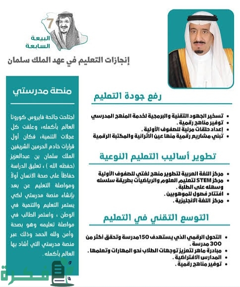 - لذلك قام الملك سلمان بتعيين فريق من المتخصصين للاشراف على تنفيذ رؤية المملكة 2030 والتأكد من انها تسير في المسار الصحيح نحو تطوير التعليم والنهوض به وتغيير العملية التعليمية بشكل كامل في المملكة.