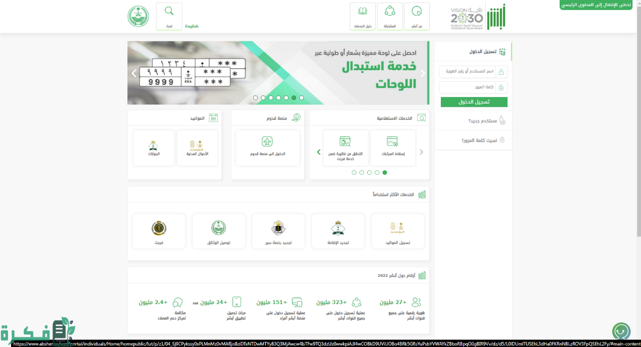 - التوجه إلى أبشر الرسمي من هنـــا.