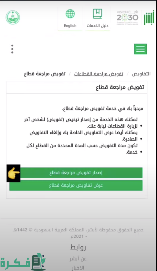 - اختيار القطاع المطلوب لإصدار التفويض.
