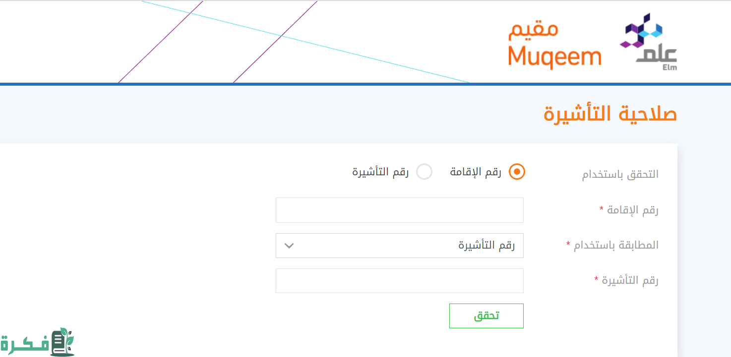 - ثم كتابة رقم الإقامة او رقم التأشيرة في الخانة المخصصة، والضغط على “تحقق”.