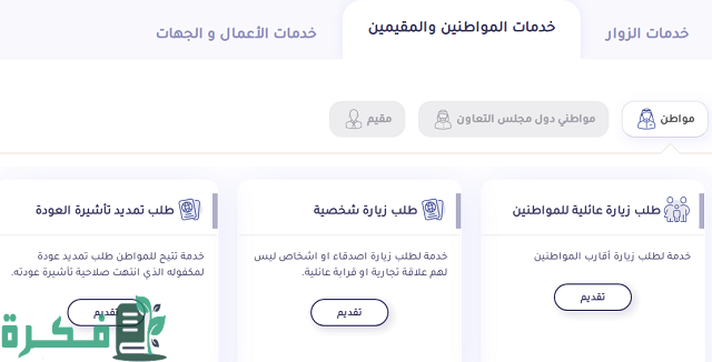 - اختيار “المواطنين والمقيمين” ثم النقر على “مواطن”.