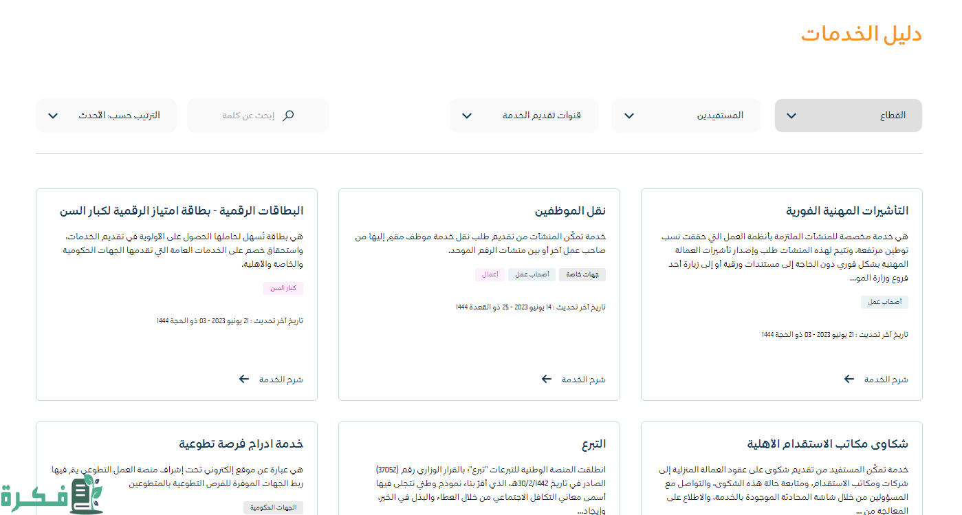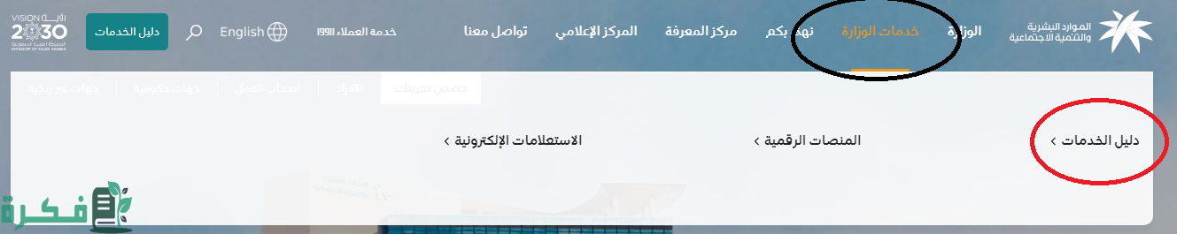 - النقر على كلمة “خدمات الوزارة“، ثم النقر على كلمة “دليل الخدمات“.