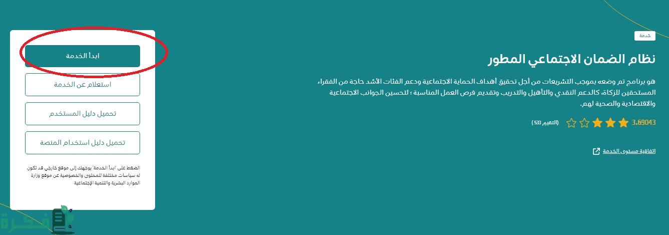 - ستظهر أمامك الصفحة الخاصة بالنظام، يجب النقر على “ابدأ الخدمة“.