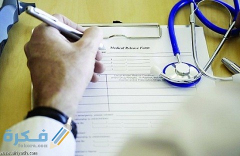 التحرير في يوم….. الموافق…. /….. /….، صادرة عن… مستشفى يقع في منطقة…..، محافظة…. (ثم تعبئة جميع البيانات المطلوبة بمساعدة الطبيب، وبيانات خاصة بالمستشفى لتقديمها لجهة العمل).