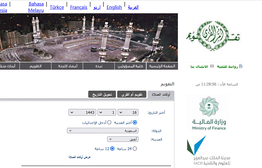 - حيث تقوم الصفحة بعرض تقويم أم القرى المعتمد في المملكة العربية السّعوديّة، وتقوم بتحديد الأشهر وبداية العام ونهايته والمناسبات التي تأتى كل عام هجرى من أعياد الأضحى والفطر وشهر رمضان المبارك بجانب ليلة النصف من شعبان وليلة الإسراء والمعراج ويوم عاشوراء وبداية السنة الهجرية وغيرها من المناسبات.