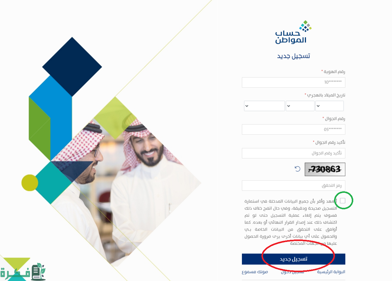 طريقة التسجيل في حساب مواطن