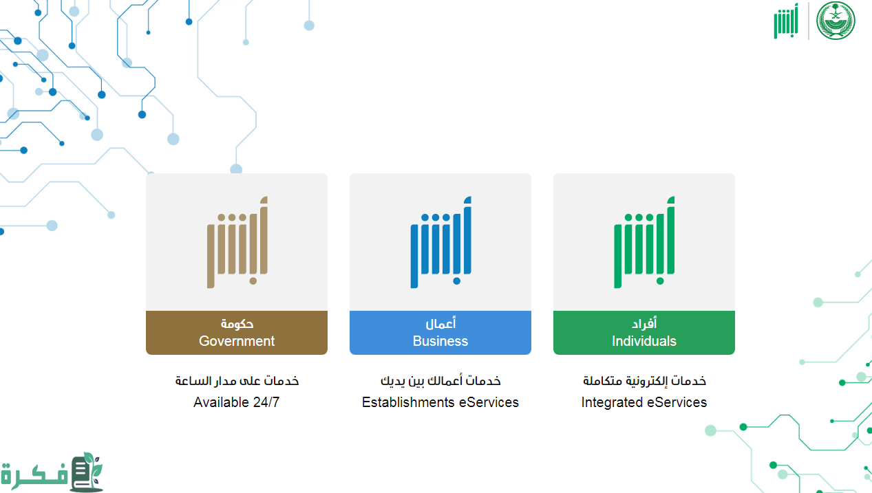 - التوجه إلى منصة أبشر الإلكترونية من هنـــا
