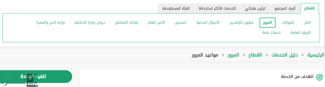 - اختيار أيقونة “مواعيد المرور”.