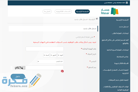 - ملء كافة البيانات المطلوبة المتمثلة في (رقم الهوية، تاريخ الميلاد، الجنس)
