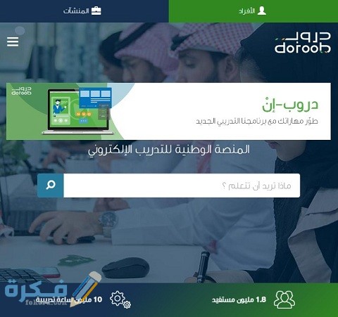 - في البداية عليك الدخول على الموقع الرسمي لمنصة دروب من هنــــــا.