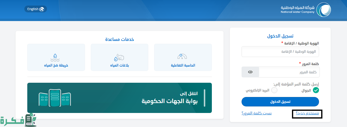 طريقة إنشاء حساب جديد في شركة المياه الوطنية