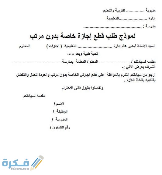 - يتم الموافقة على الإجازة بدون راتب في حالة تقديم شرح وافي عن أسباب ومقدمات هذه الإجازة.