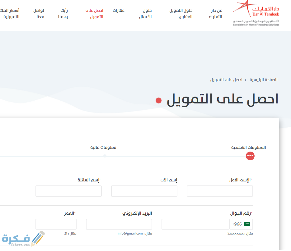 - من أجل التقديم للتمويل من دار التمليك في المملكة العربية السعودية يجب الدخول الى رابط دار التمليك من هنا.