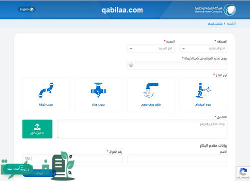 • اولا يقوم المتقدم بالشكوى بالتوجه الى الموقع الالكتروني للشركة الوطنية للمياه ويمكن الدخول إليها من خلال هذا الرابط اضغط هنا.