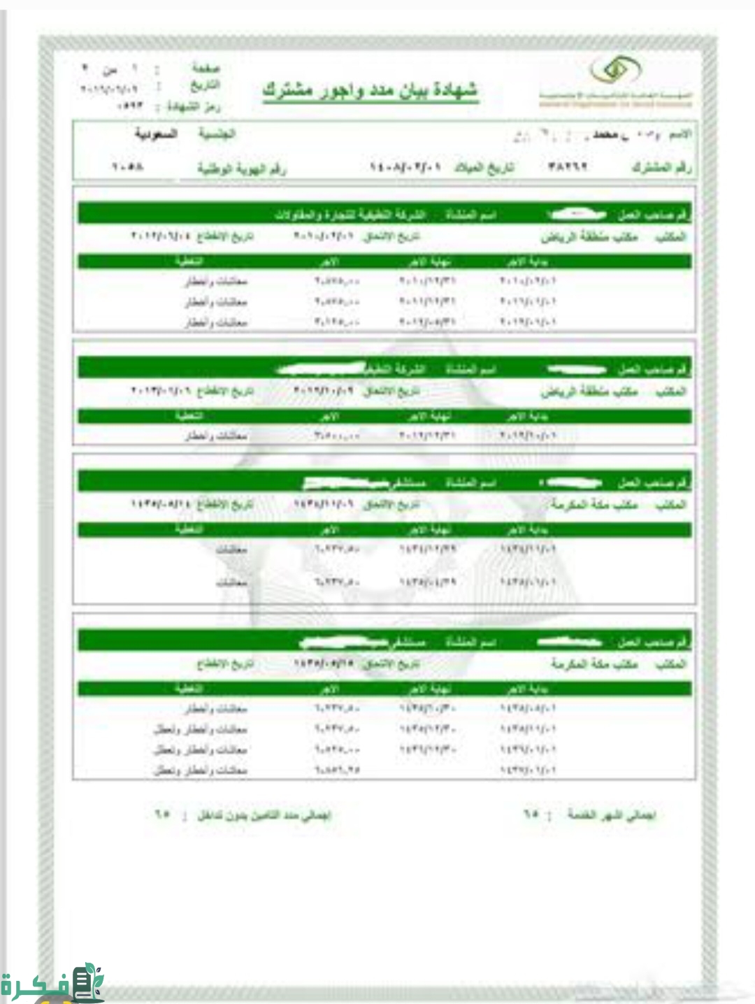 شهادة بيان مدد الاشتراك في التأمينات الاجتماعية