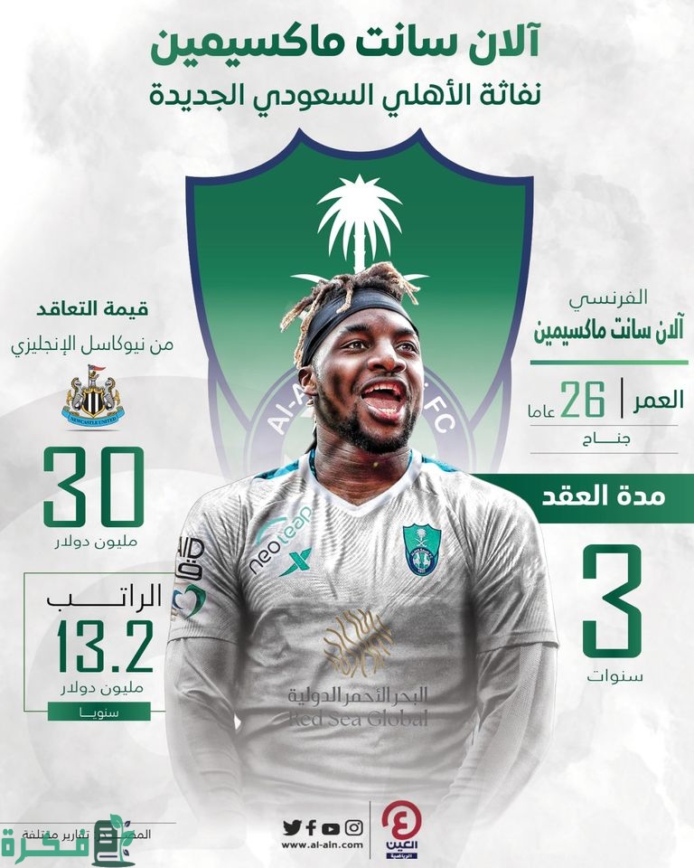سانت ماكسميليان | نيوكاسل يونايتد | انتقل في صفقة قدرها 27.2 مليون يورو |
