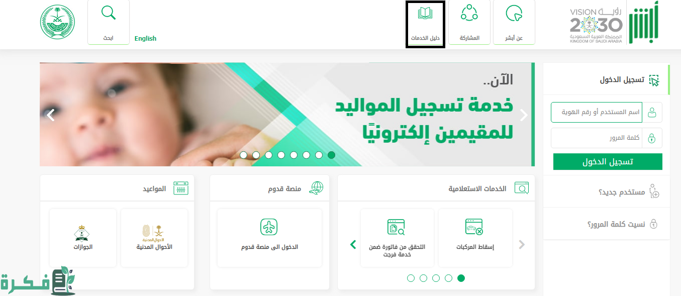 - الضغط على كلمة “دليل الخدمات”.