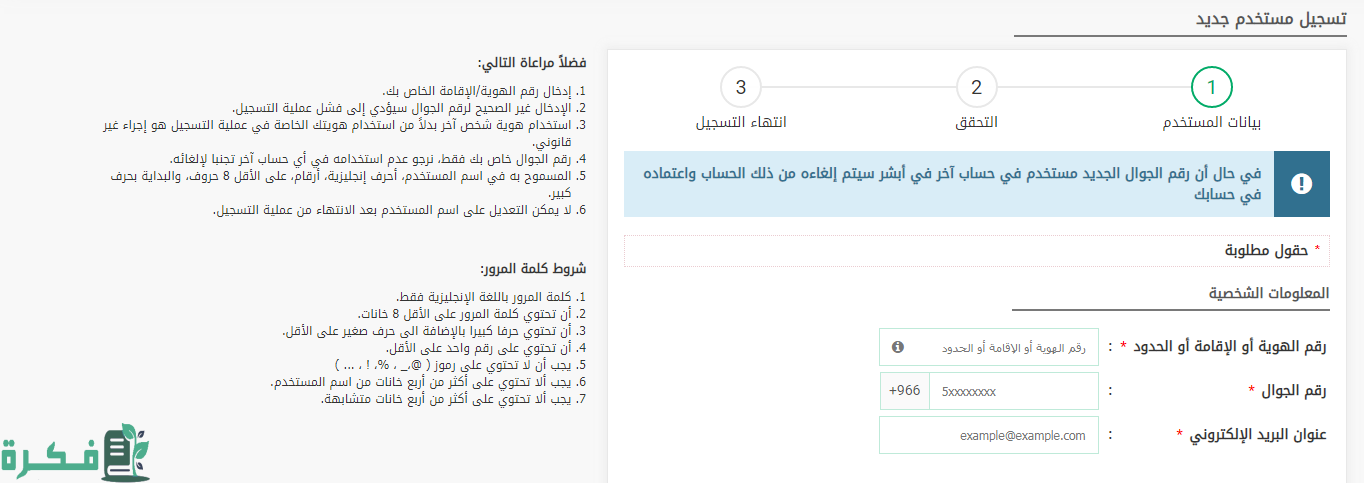- كتابة بيانات عنوان التابع مثل: المنطقة، المدينة، الحي، رقم الهاتف.