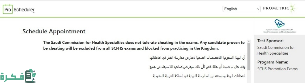 - اختيار أقرب موقع لإجراء الامتحان والضغط على زر حجز موعد.