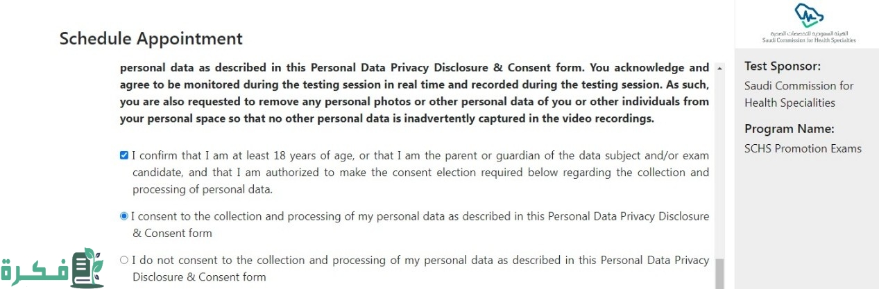 - حدد الموعد المناسب لأخذ الاختبار من حيث اليوم والساعة بعد ذلك قم بالنقر على التالي.