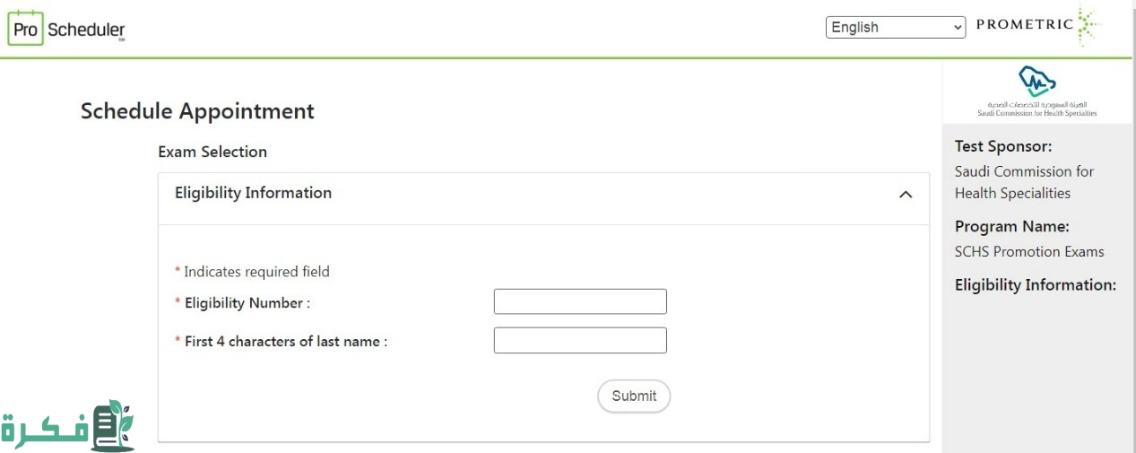 - إدخال رقم الأحقية التي تم حجز الاختبار بها.