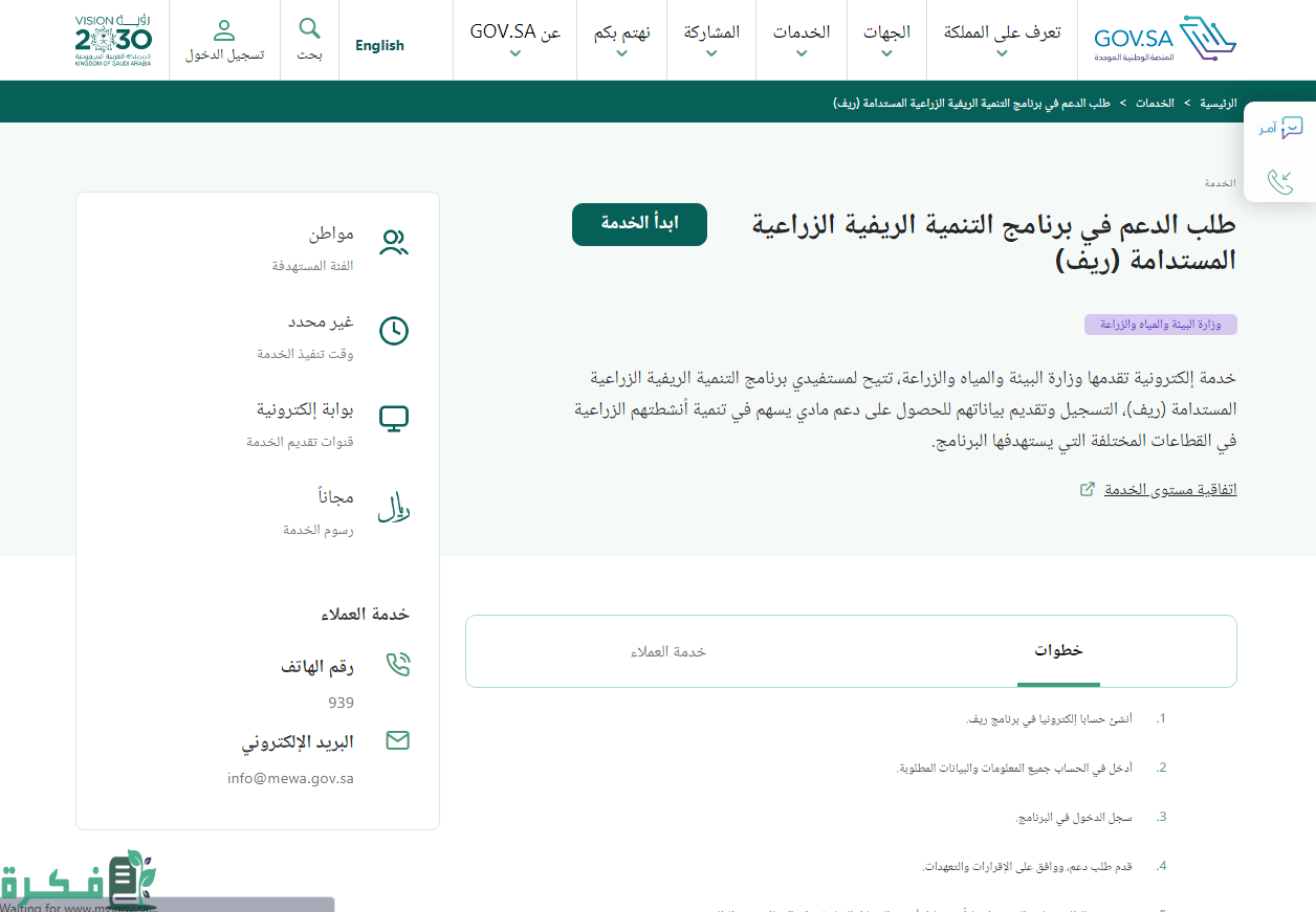 ما يستوجب تقصي الشروط أولًا قبل الحصول على أي دعم من ريف، وفي حالة توافرها يتم حساب مبلغ الدعم، حيث تقوم المملكة العربية السعودية بعمل كافة الجهود لمحاولة النهوض بالدولة اقتصاديًا وزراعيًا.