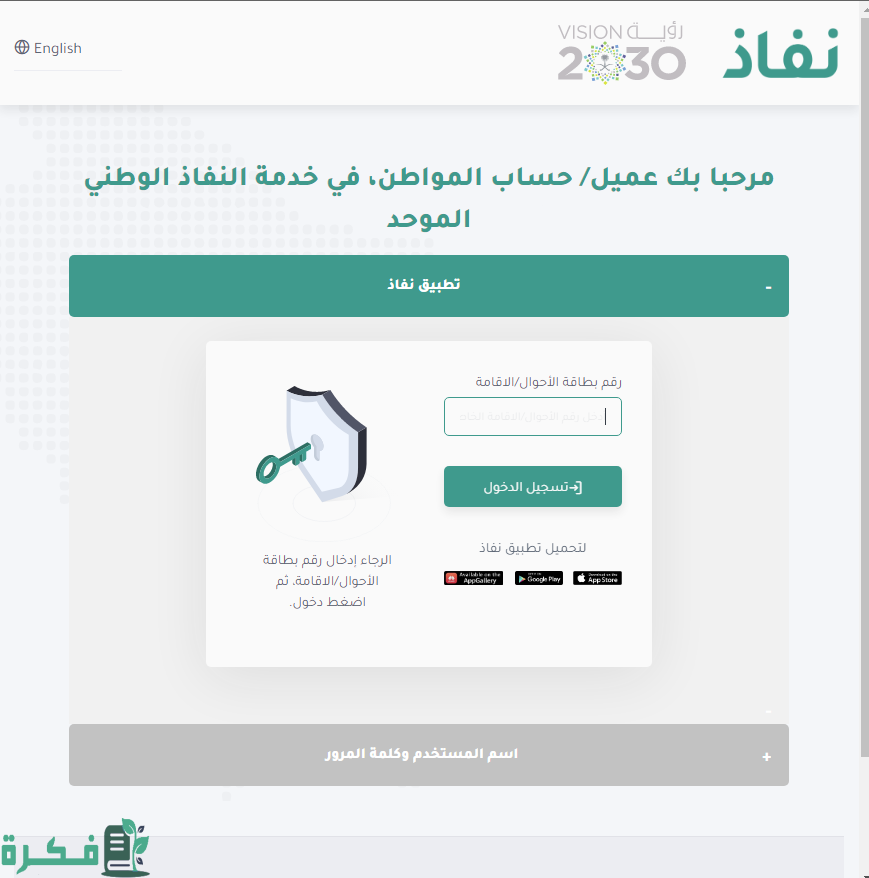 - أو يُمكن التسجيل من خلال النفاذ الوطني الموحد.