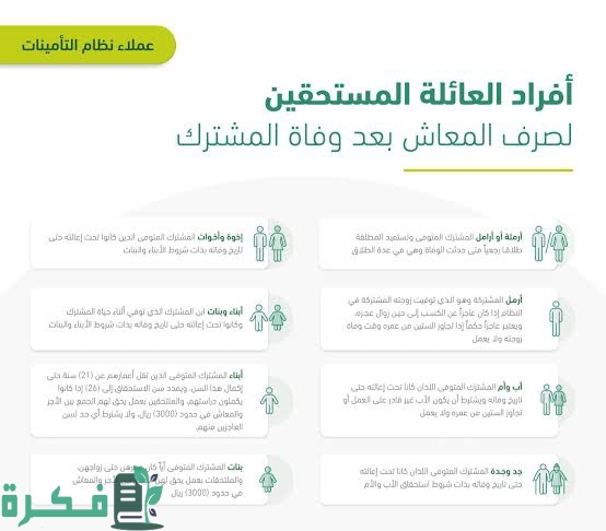 بعد الوفاة يحصل الورثة على المعاش، الورثة الذين يستحقون الحصول على المعاش يكونوا في الحالات التالية: