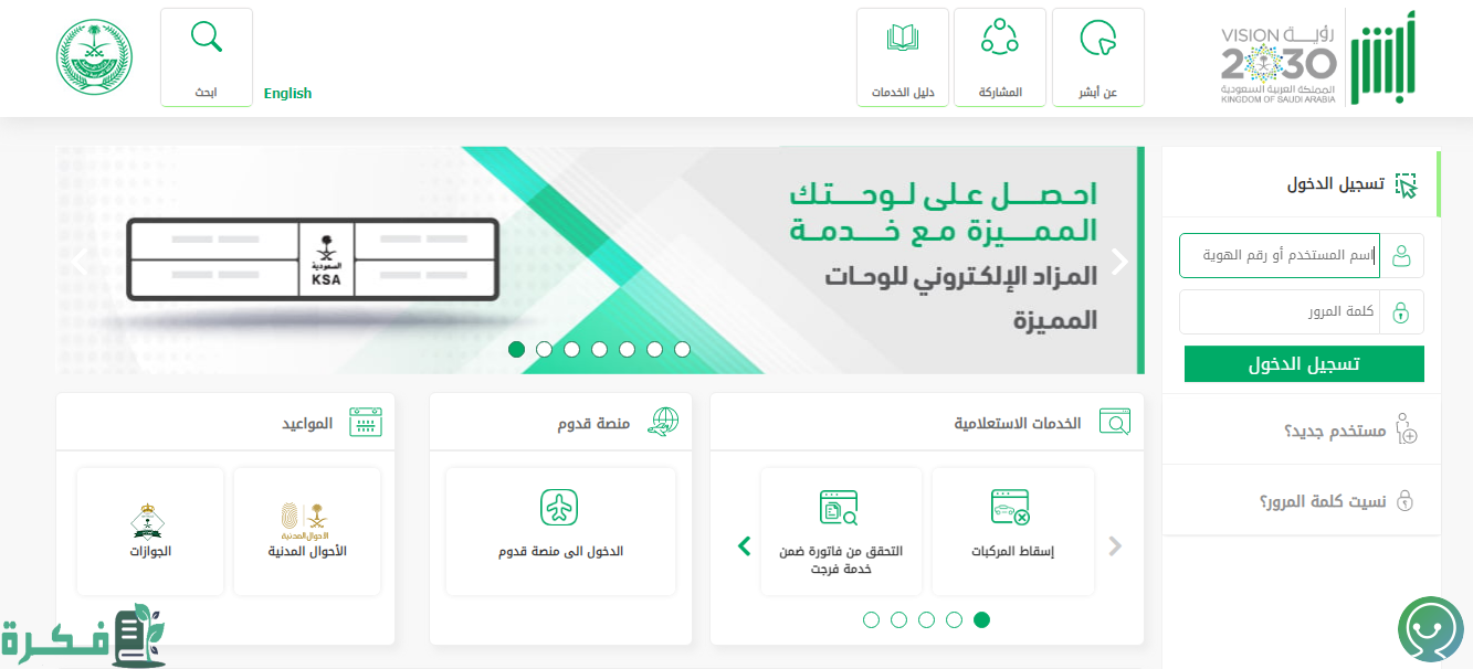 - الذهاب إلى الموقع الرسمي لأبشر من هنـا.