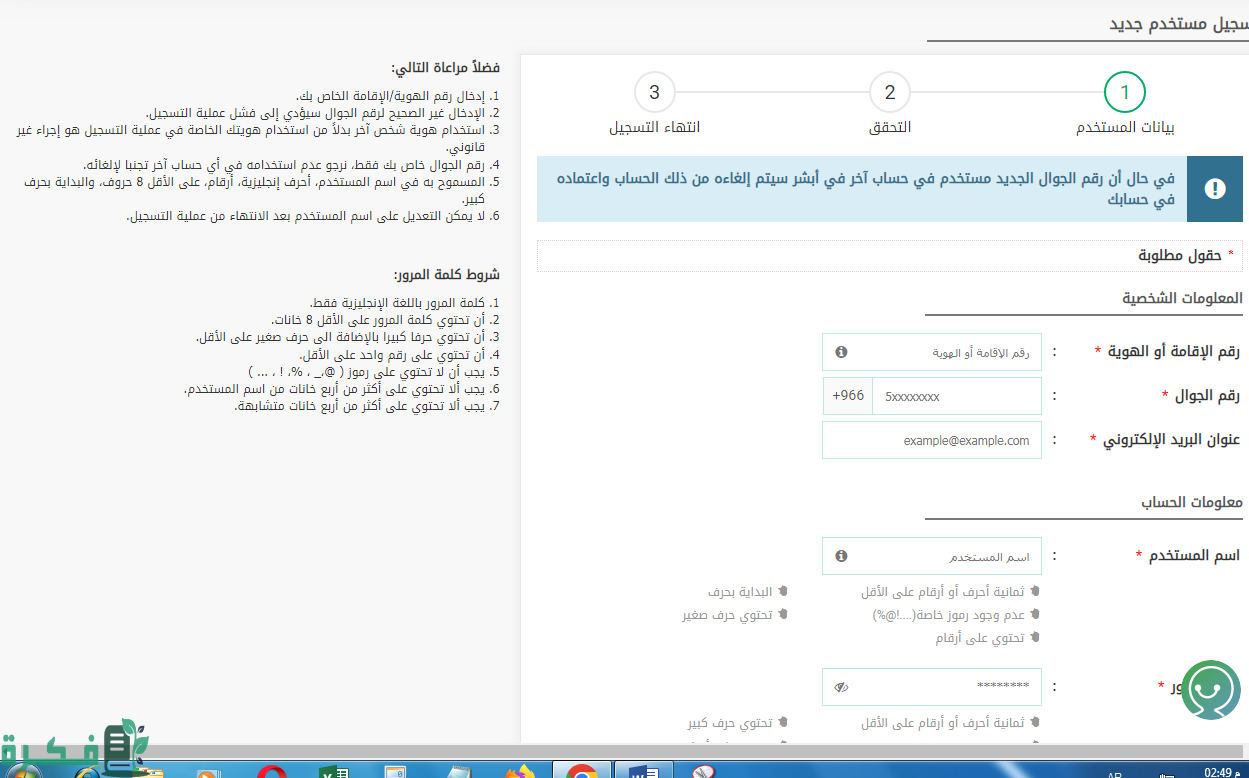 - الوصول إلى رقم الجوال المسجل بالنظام رمز يتم إدخاله لكي يتم التسجيل.