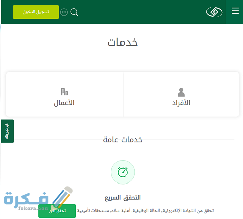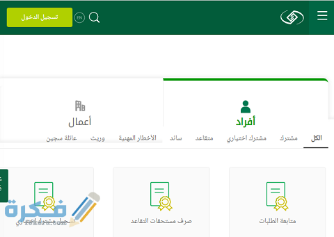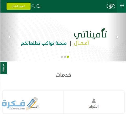 - في البداية عليك الدخول إلى الموقع الرسمي الخاص بالمؤسسة العامة للتأمينات من هنـــــــا.