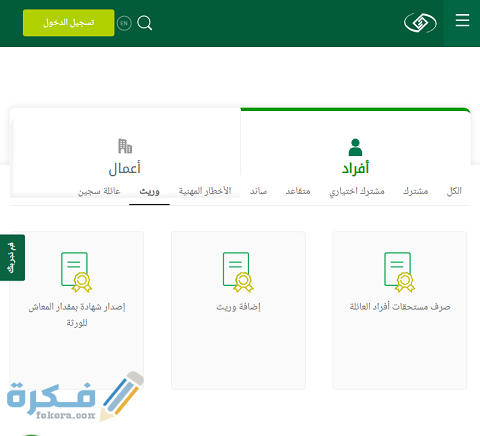 - عليك عرض كل الخدمات التي تختص بالوريث عبر الموقع.