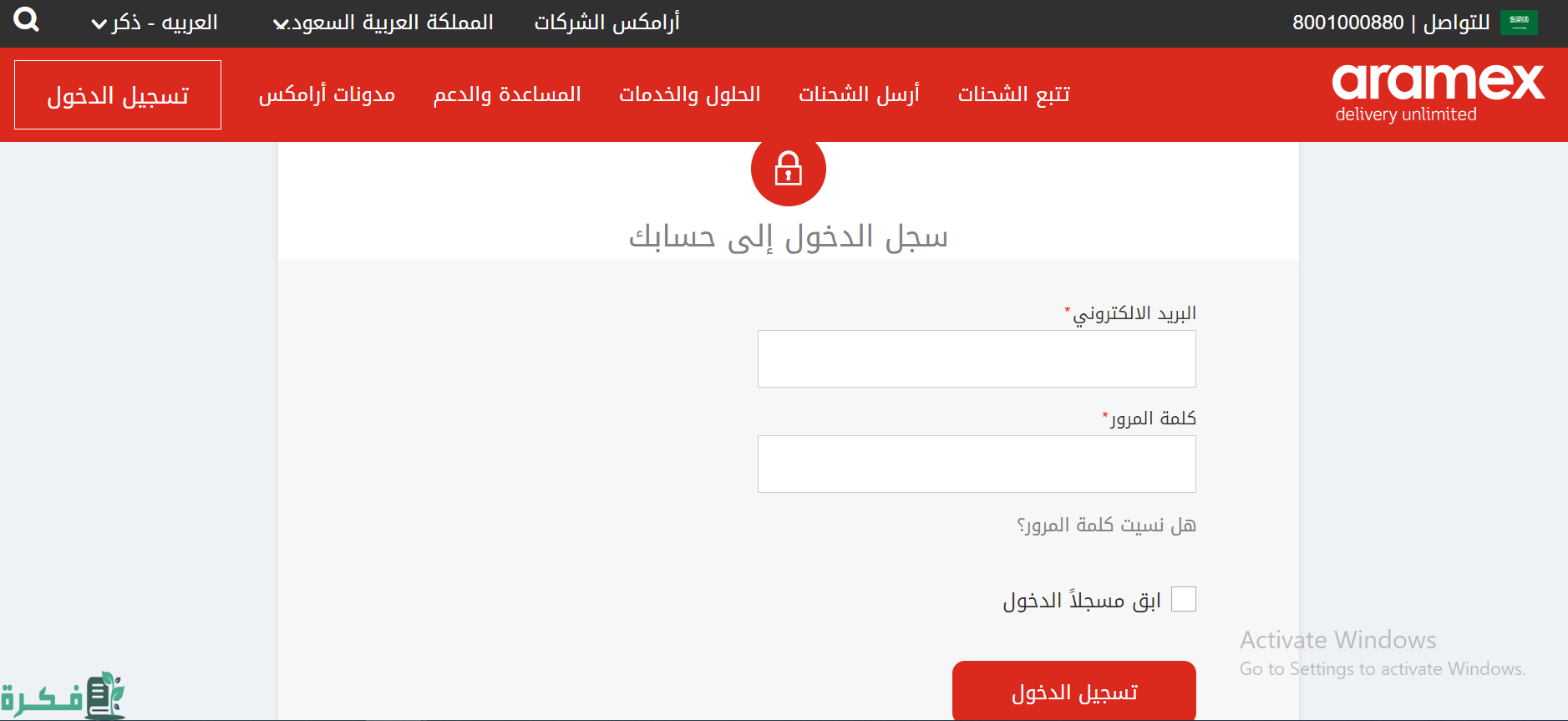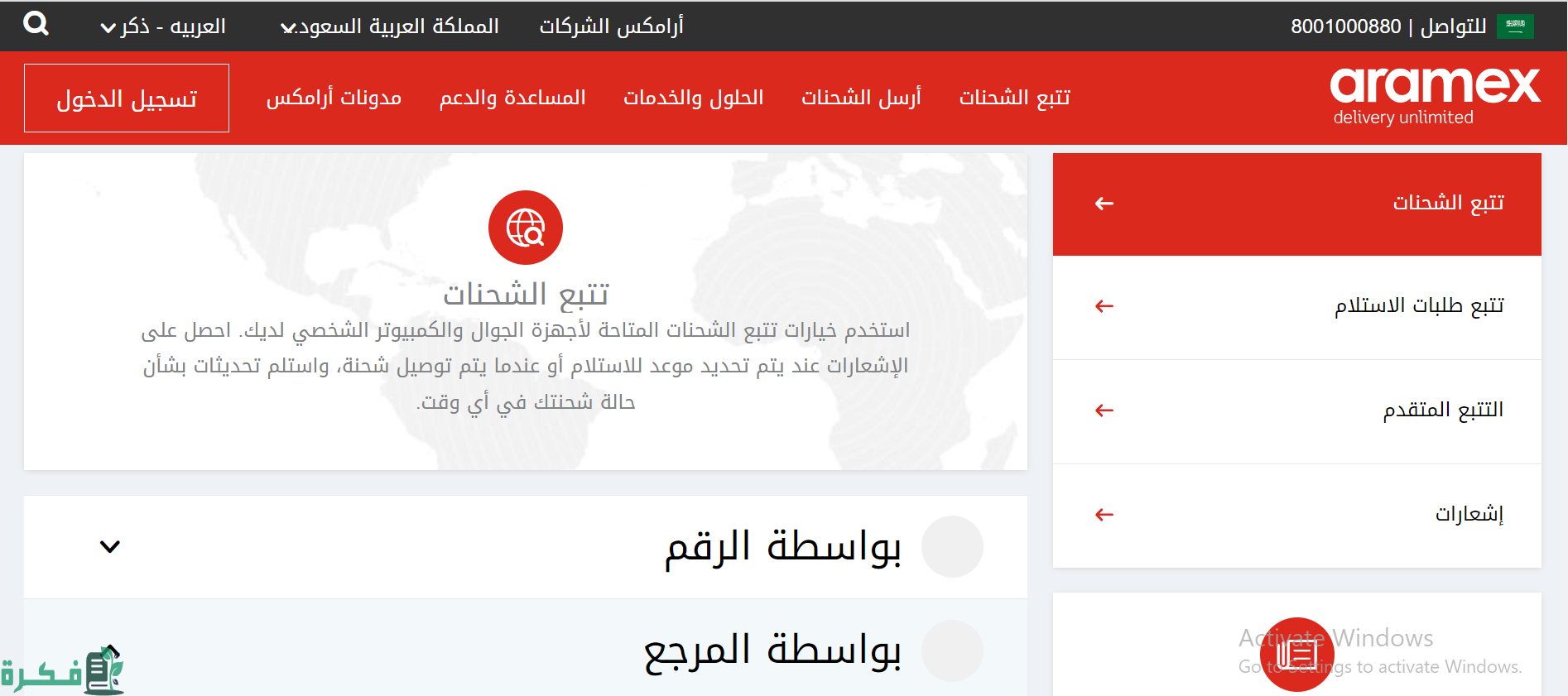 - ادخل الى موقع شركة ارامكس على الانترنت.