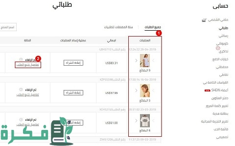 - تسجيل الدخول الحساب للموقع والنقر على طلباتي.