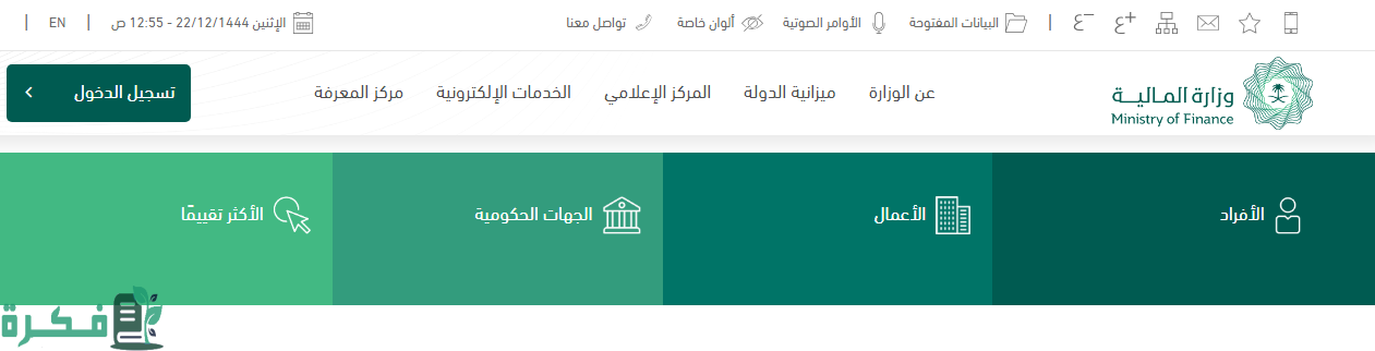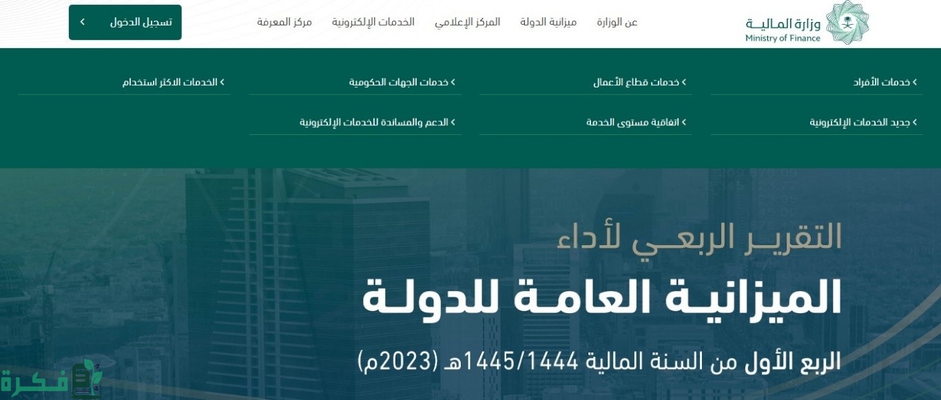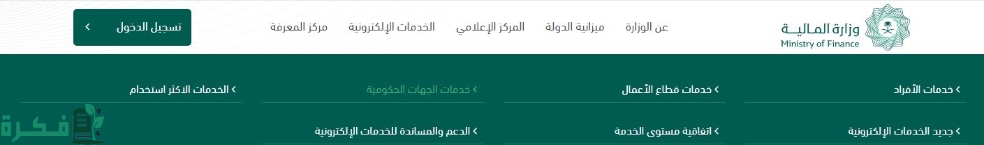 - افتح الموقع الإلكتروني الخاص بوزارة المالية من هنـا وانقر على “الخدمات الإلكترونية”.