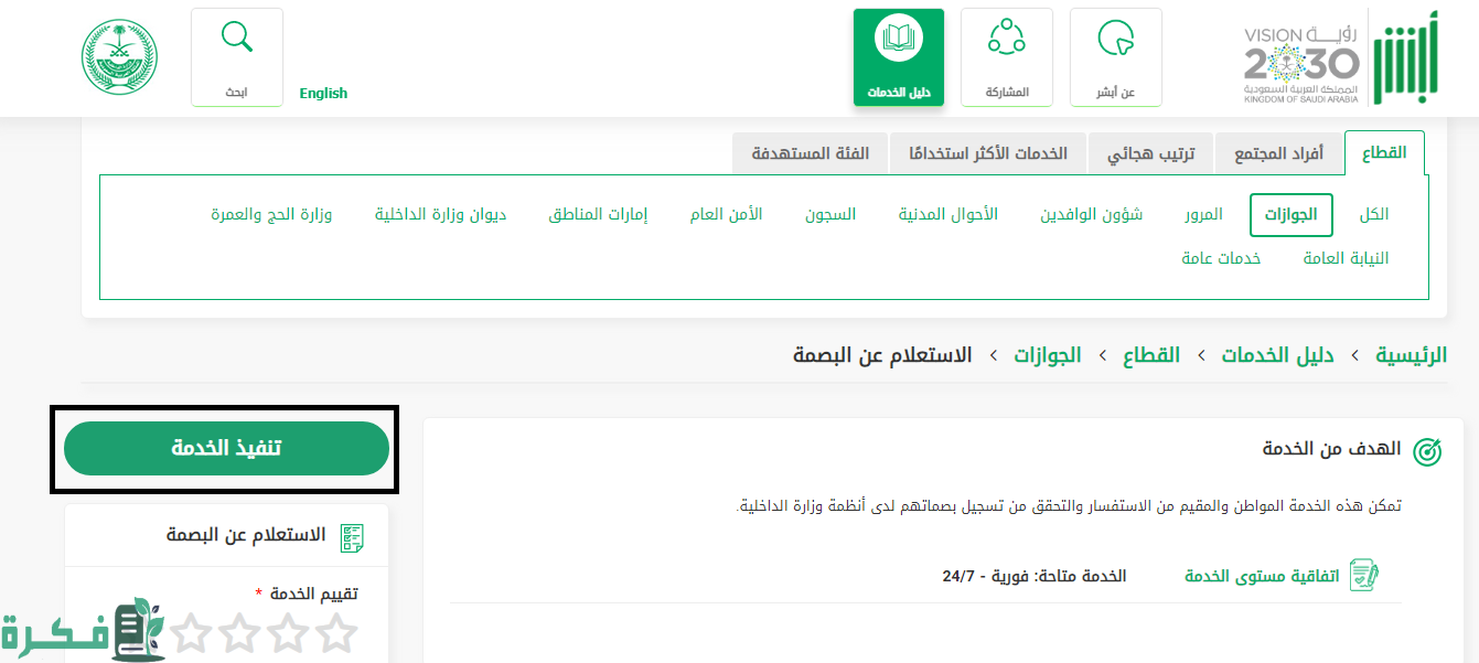 - الضغط على “تنفيذ الخدمة”.