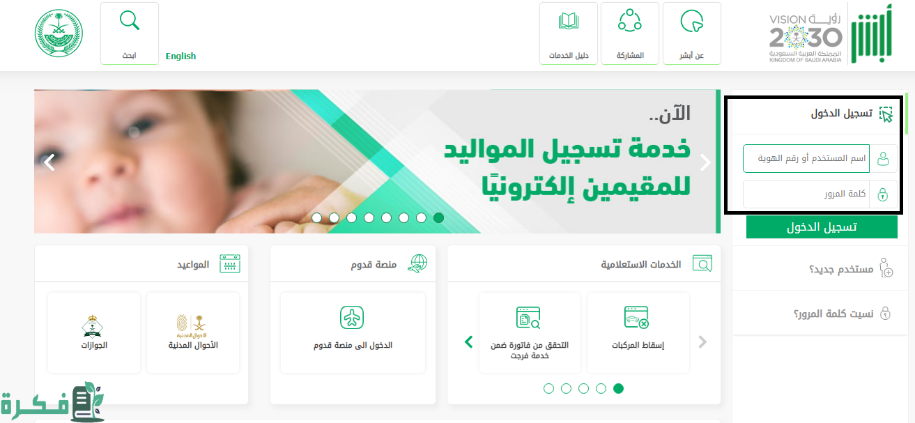 - تسجيل الدخول على حساب أبشر.