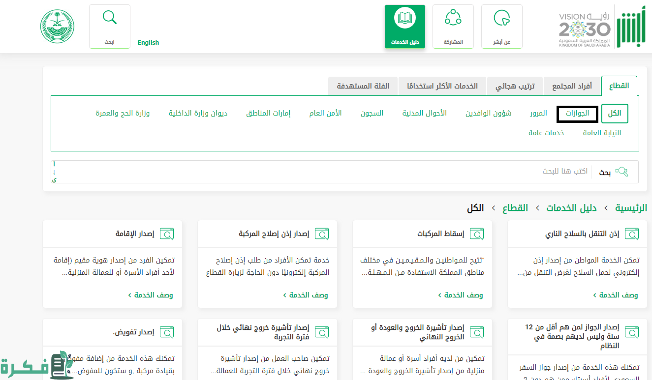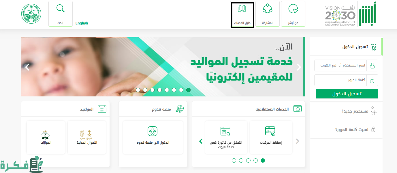 - الضغط على “دليل الخدمات”.